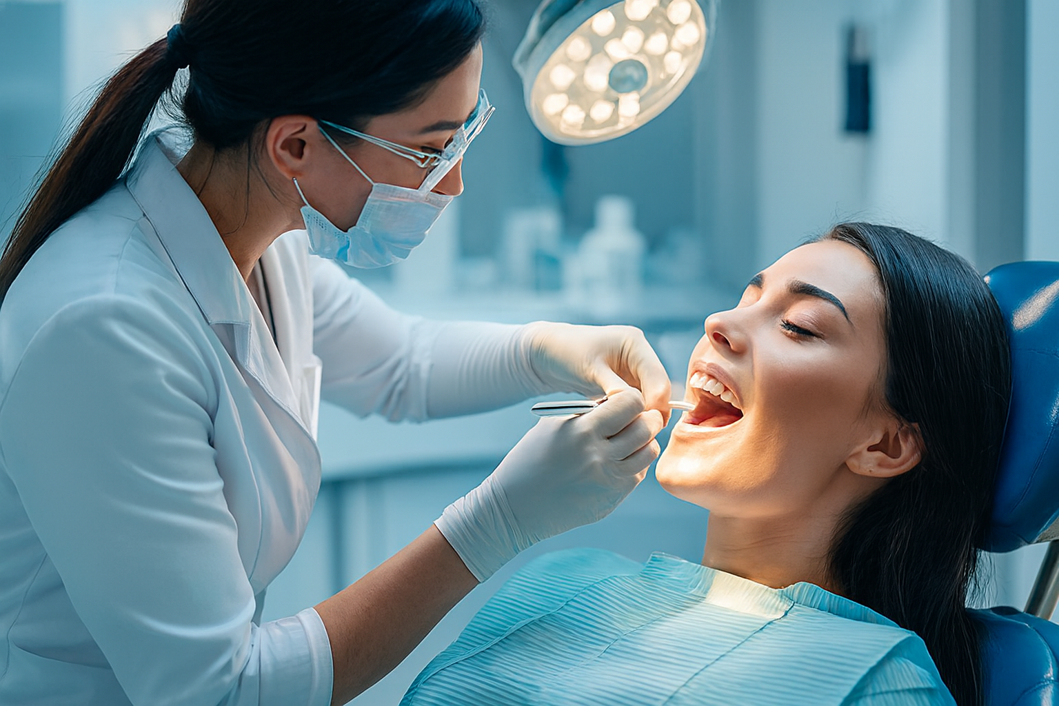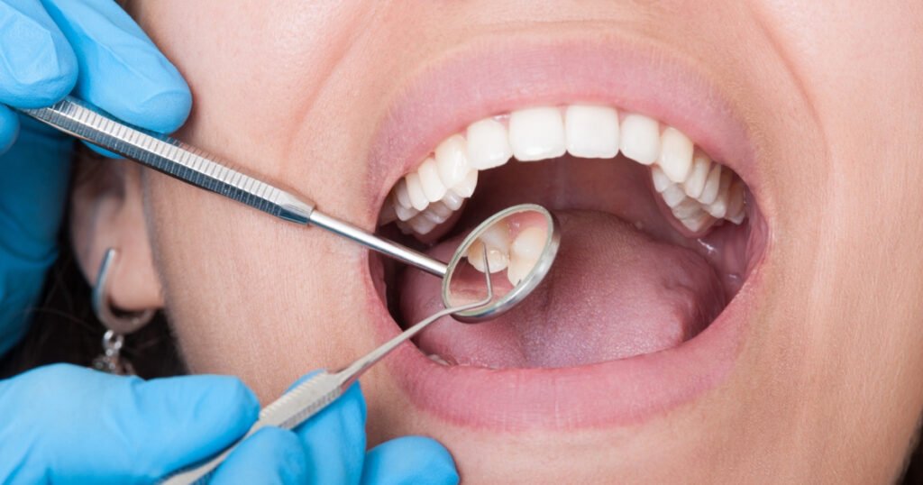 A detailed oral evaluation is performed to assess dental health, gum condition, bite alignment, and underlying issues.